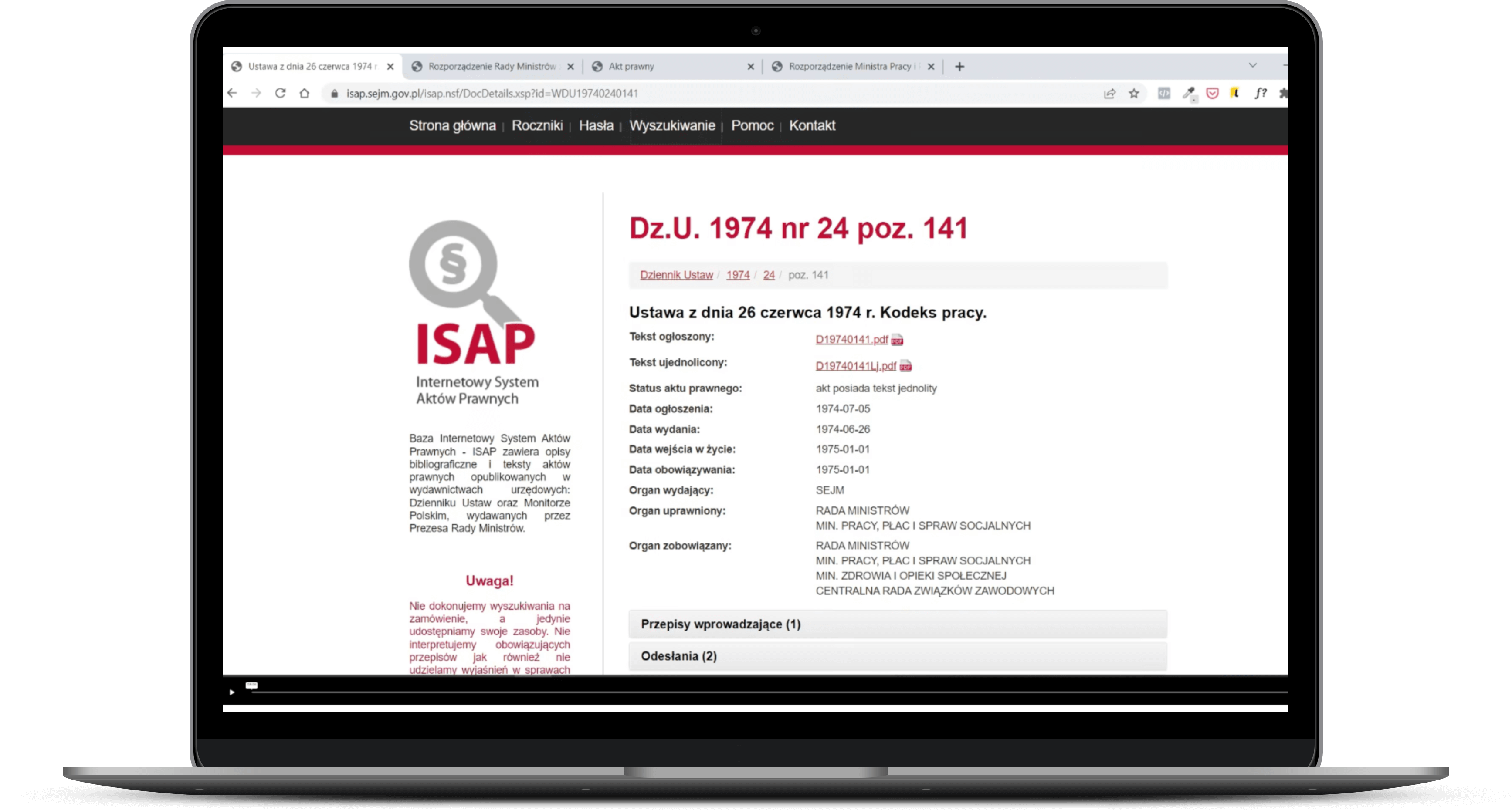 - Sprawdzisz status aktu prawnego: czy obowiązuje, czy został uchylony - a jeśli tak, to czy jest coś w zamian.
