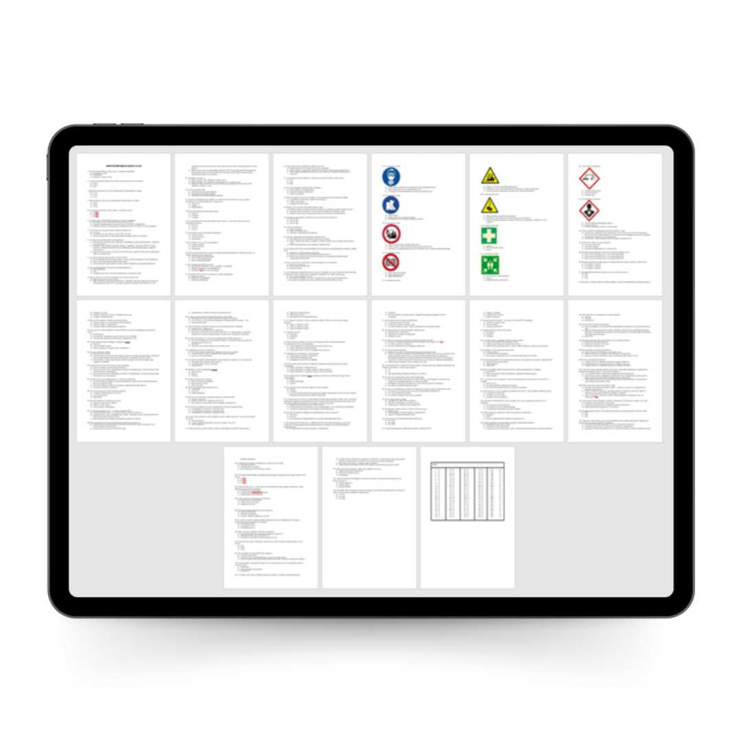 - otrzymasz aż 125 gotowych pytań egzaminacyjnych w postaci testu jednokrotnego wyboru + wskazówki, jak z nich korzystać