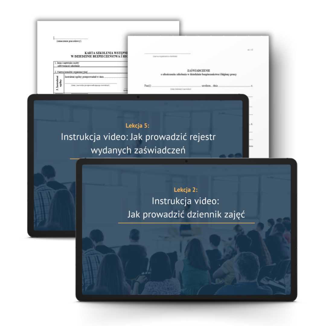 Oczywiście nie obędzie się bez dokładnego przedstawienia zasad tworzenia i prowadzenia dokumentacji szkoleniowej, czyli co musisz opracować, kto i gdzie musi się podpisać i komu co przekazać.